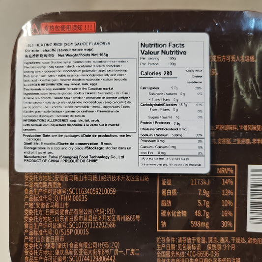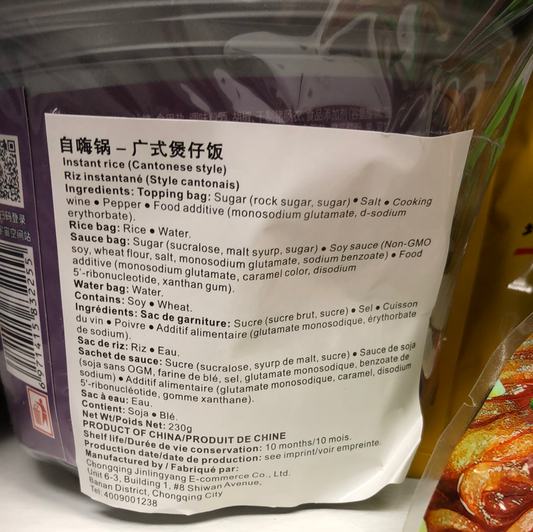 Riz auto chauffant (saucisse douce) 自嗨锅 广式香肠煲仔饭自热锅 230g