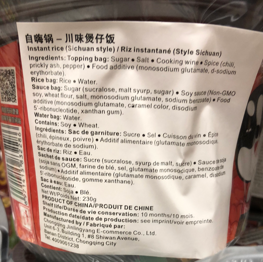 Riz auto chauffant (saucisse épicée) 自嗨锅 川味腊肠煲仔饭 自热锅 230g