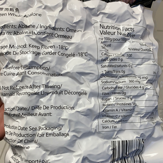 ÉpuiséOrmeau entier surgelé 急冻带壳鲍鱼
