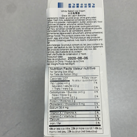 Barre glacée de Lapin Blanche大白兔雪糕