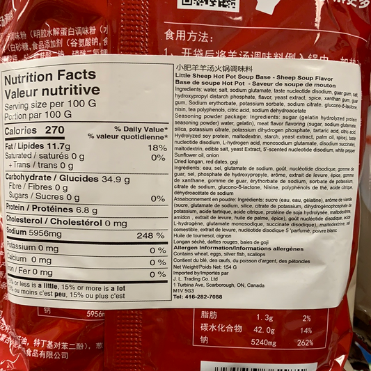 Base de soupe d'agneau XFY 小肥羊 羊汤调味料 154g