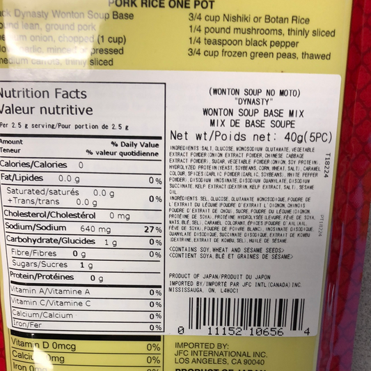 Base de soupe Won Ton japonais DYNASTY 日本🇯🇵云吞汤 5x8g