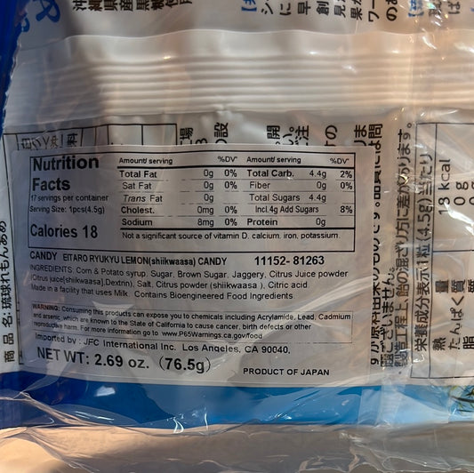 Bonbon japonais au citron Eitaro NODO 76.5g