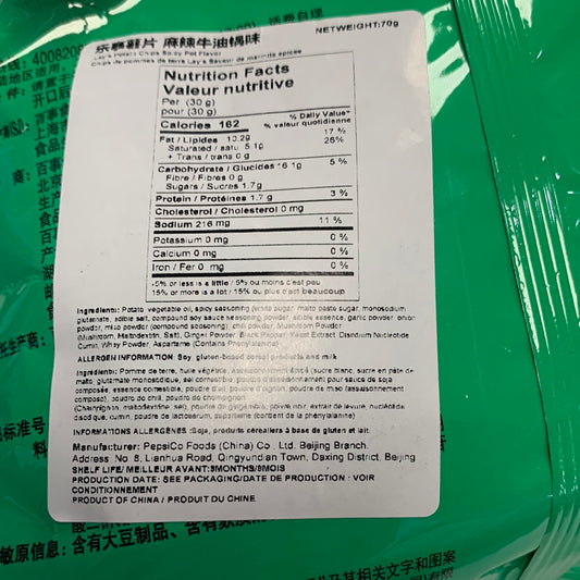 Chips Lay’s (saveur de fondue chinoise) 乐事 麻辣牛油锅味薯片70g