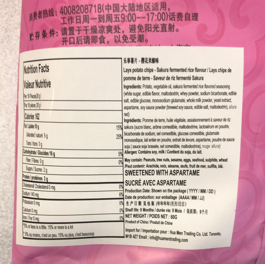 Chips Lay’s (saveur de riz fermenté Sakura) 乐事 樱花米酿味 60g