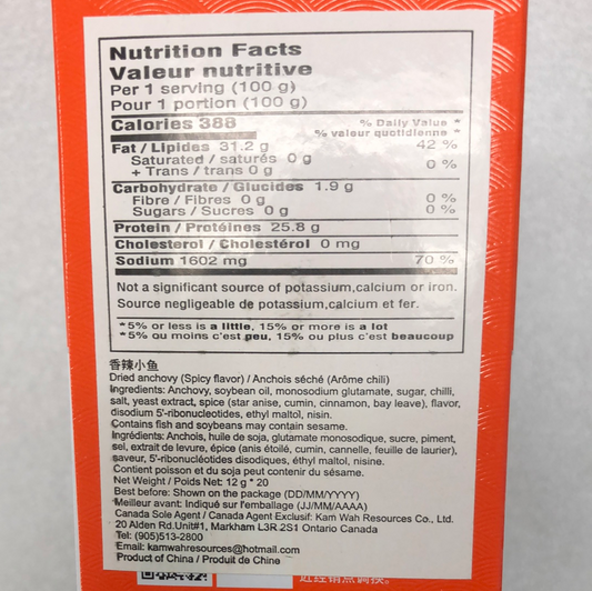 Poisson séché épicé JZ 劲仔 香辣小鱼 240g