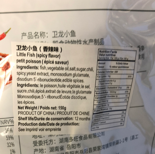 Poisson séché épicé WL 卫龙🌶️小鱼 150g