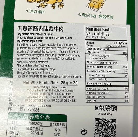 Tofu séché(saveur de boeuf en sauce) 五贤斋 酱香素牛肉 500g