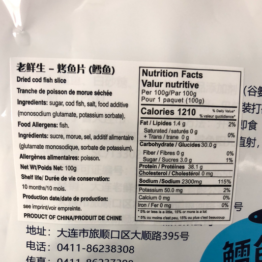 Tranche de morue séchée 老鲜生 鳕鱼 烤鱼片