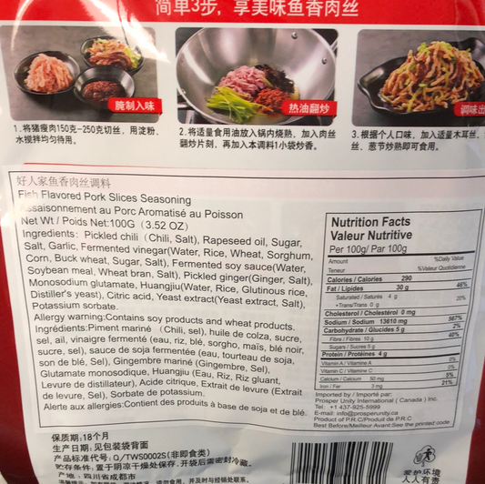 Assaissonnement de porc aromatisé au poisson HRJ 好人家 鱼香肉丝 调料 100g