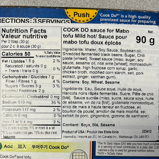 Sauce pour Mapo Tofu (peu épicée) AJ 微辣 麻婆豆腐调料 90g