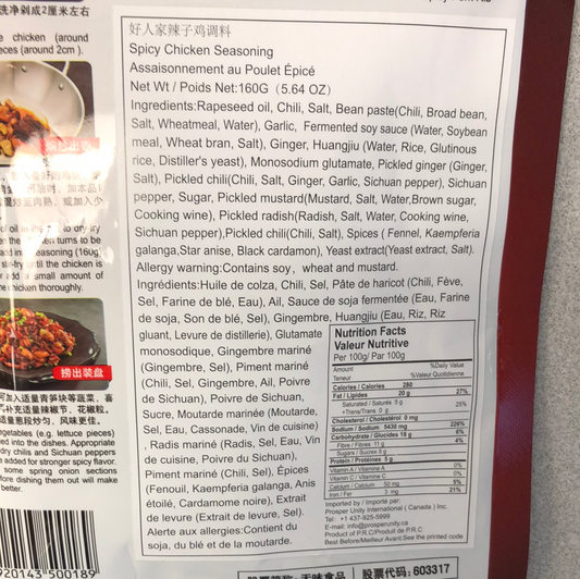 Assaissonnement de poulet au piment HRJ 好人家 辣子鸡 调料 160g