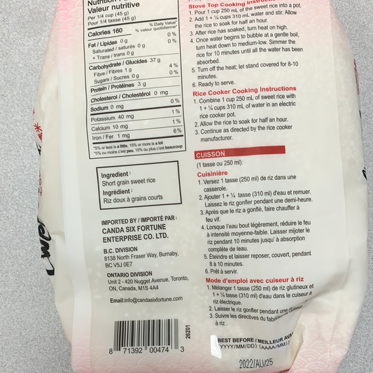 Riz glutineux(grain court) HEIWA 平和 圆糯米 4lb
