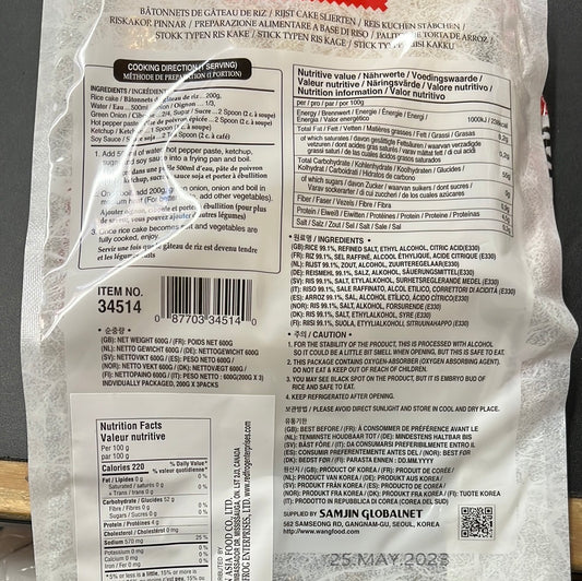 Gâteau de riz coréen en bâton WANG 韩国 年糕条600g
