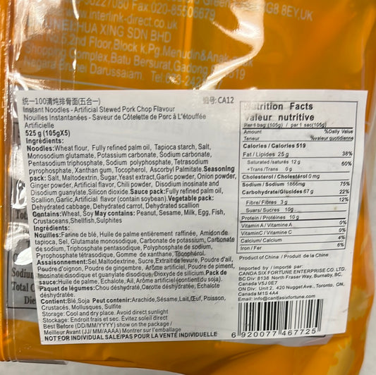 Nouilles instantanées UNIF (soupe de porc)- 统一 清炖排骨面