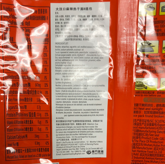 Nouilles sèches chaudes Wuhan DHK 大汉口 麻辣 武汉热干面 102gx8