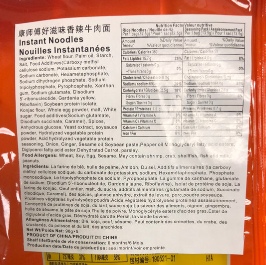 Nouilles instantanées KSF (bœuf épicé)-康师傅 香辣牛肉面