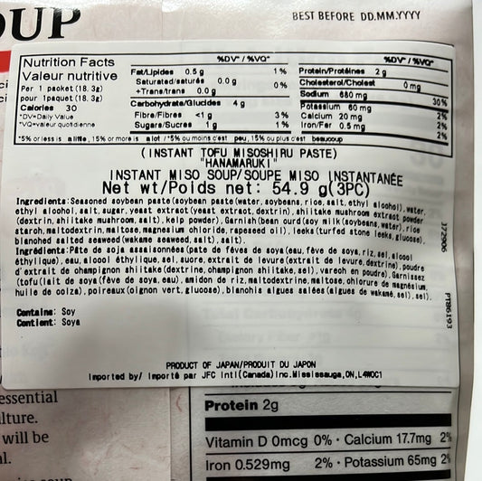 Soupe Miso Instantanée (tofu) HANAMARUKI 日本 豆腐味增汤包 54.9g