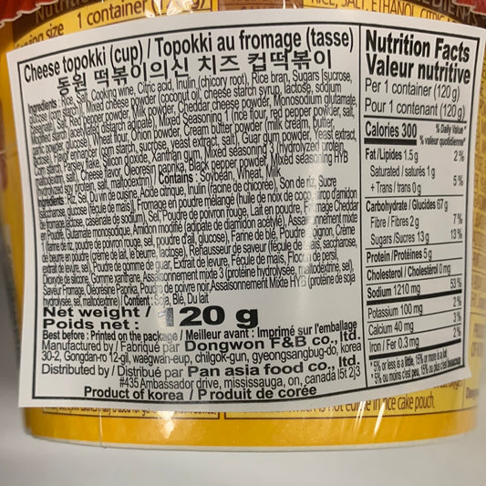 Gâteau de riz au fromage Topokki(saveur épicée) DONG WON 120g