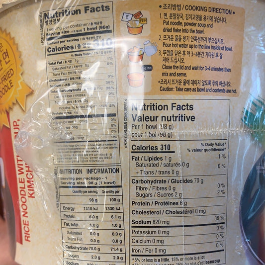 Nouilles de riz instantanée (saveur kimchi) Wang Korea 98g