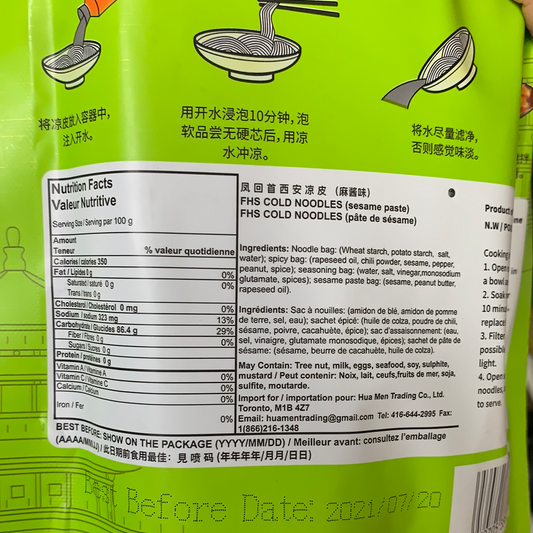 Nouille froide Xi'an (saveur sésame) 麻酱 西安凉皮 160g