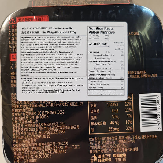 Riz au poulet braisé auto-chauffant HDL