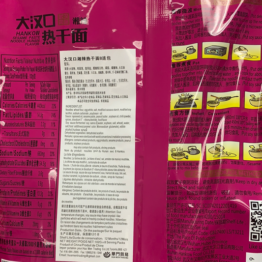 Nouilles sèches chaudes Wuhan DHK 大汉口 湘辣 武汉热干面 102gx8