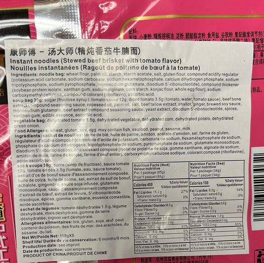 Nouilles instantanées KSF (saveur de bœuf à la tomate)-康师傅汤大师 精炖番茄牛腩面 119g x5