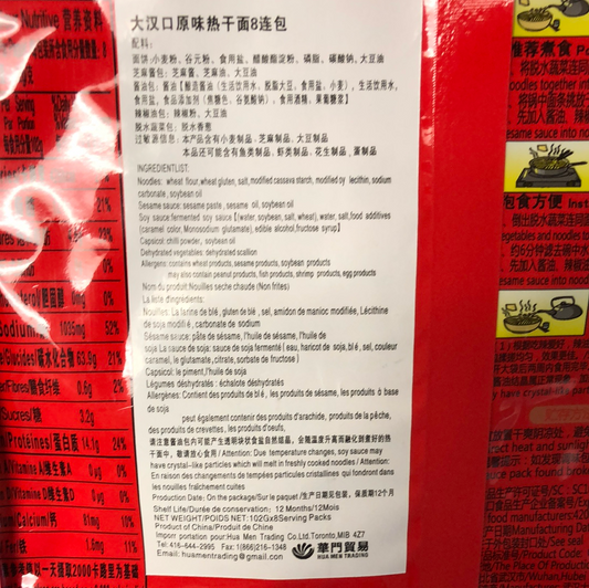 Nouilles sèches chaudes Wuhan DHK 大汉口 原味 武汉热干面 102gx8