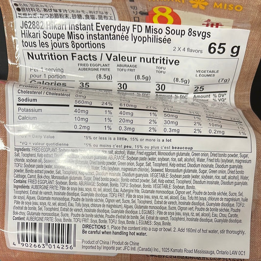 8 portions Soupe Miso Instantanée HIKARI 日本 味增汤包 65g