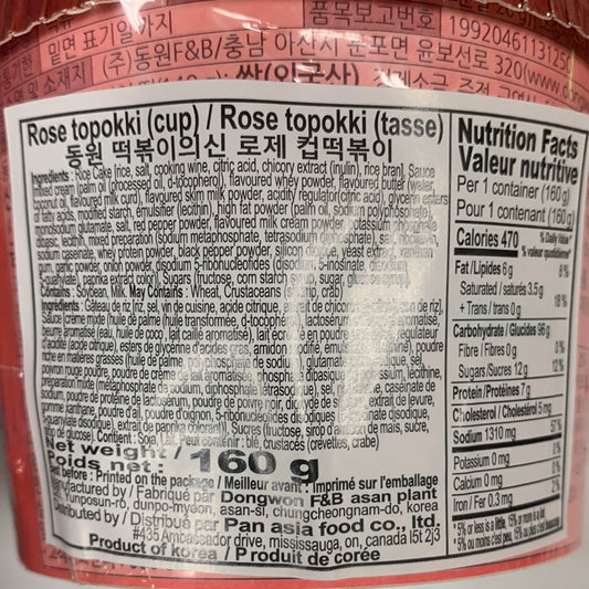 Gâteau de riz Topokki (saveur rose) DONG WON 160g