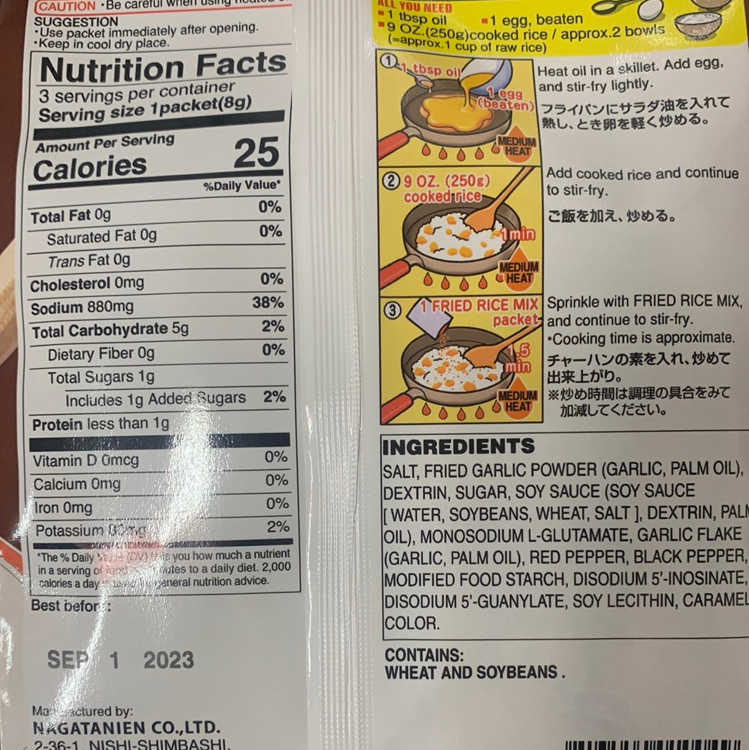 Assaisonnement pour riz frit (saveur ail rôti) NAGATANIEN 24g