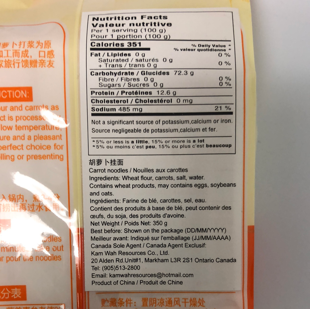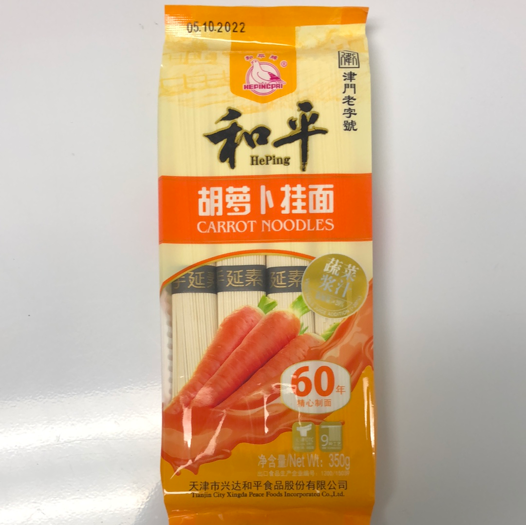 Nouilles aux carottes 和平 胡萝卜挂面 350g